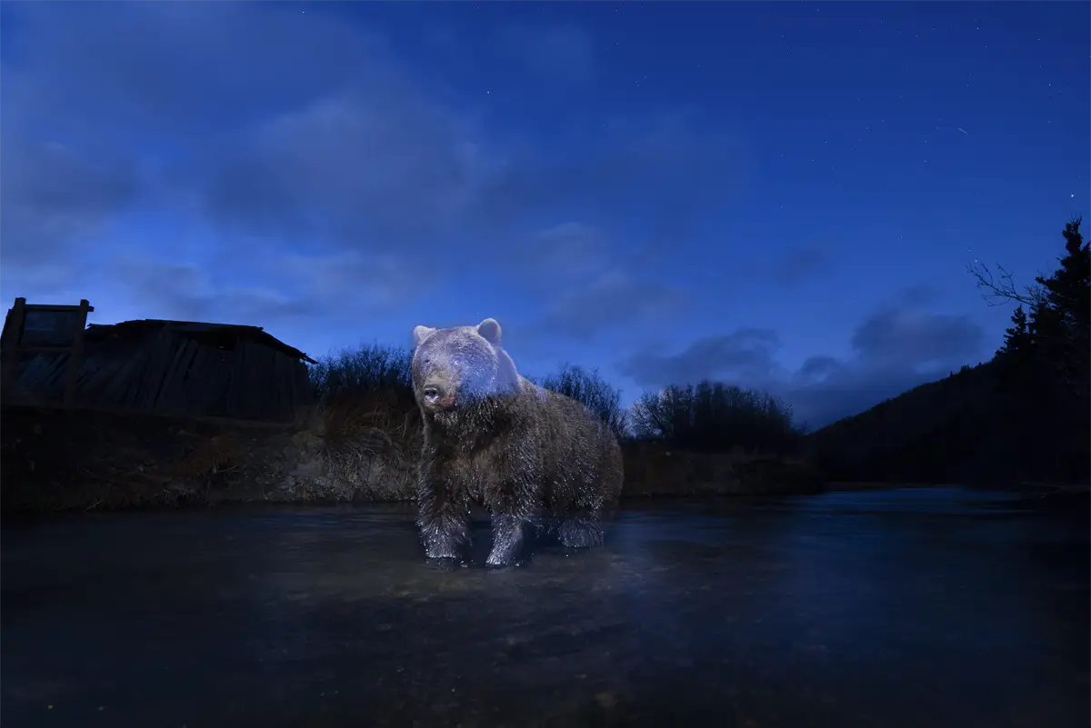 Northern ecosystems are much like deserts, picturesque and resilient, but in flux due to climate change and industrialization. Hallmarked by small wildlife populations, the animals that do inhabit these areas are rarely seen or heard, like ghosts. Through the use of camera traps and long exposures, we are shown rare images of bears, caribou, Arctic foxes, and wolves set against a stark, icy scenery. And even though these are fleeting glimpses snapped in a flash, we get the sense that these animals are more than just spectral tracks in the snow—they are wildlife teeming with personality and purpose.